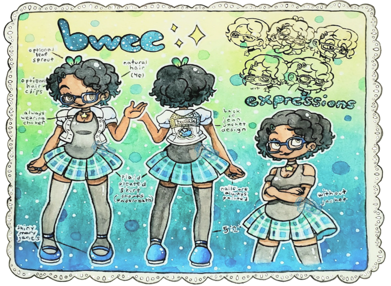Hey there, hello, Little Star 🪄I'm Bwee Lacy, a traditional artist crafting magic with a watercolor brush ‧₊˚✩彡.A couple of favorite things of mine are sparkles, the color green and all things cute!My bright, imaginative art is inspired by the things I've loved since I was a child: animation, games and music - wherein I cast a spell using fine ingredients and brew jelly-like blends in twinkly potions.The ultimate dream I have is to be able to write and illustrate my own comic books!